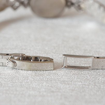 肌馴染みの良い着け心地としっとりとした重量感重を感じさせてくれるホワイトゴールドブレスとともに