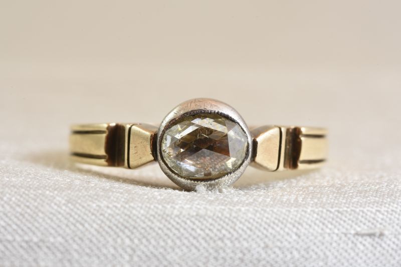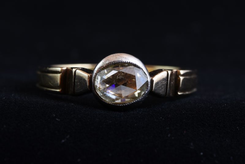 シャンクは14金です。ローズカットダイヤモンドの厚みもしっかりあり、ダイナミックな輝きが魅力です。