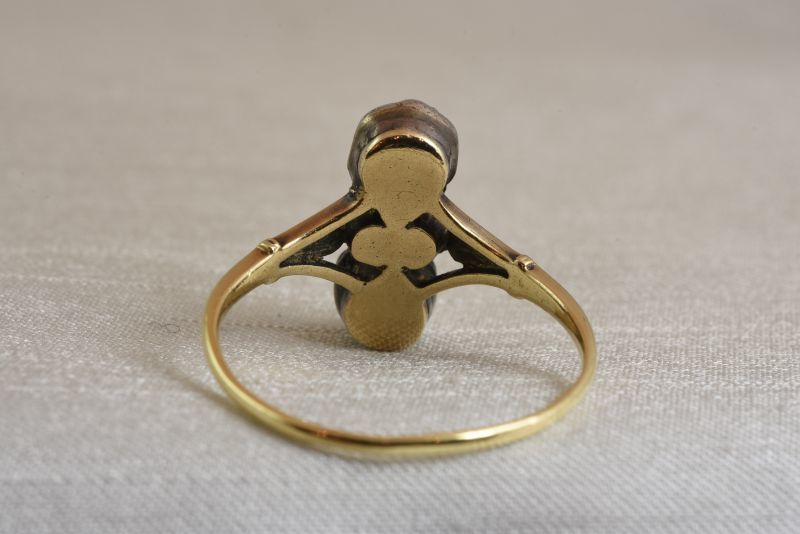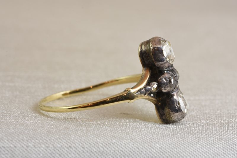 お石はクローズドセッティング。19世紀中期の作品としては、すっきりとしたシャンク部分が珍しい印象。