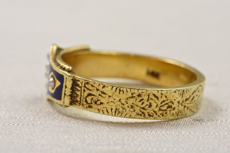 また正面のエナメル部分の上下には、一段内側へ、連なる粒金がセットされているのが伺えます。