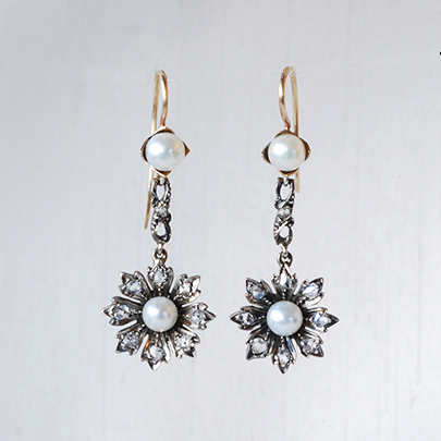 品名:ゴールド・パール・ダイヤモンドイヤリング