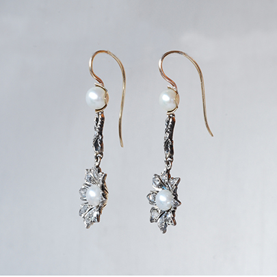 ゴールド・パール・ダイヤモンドイヤリング [E-99]