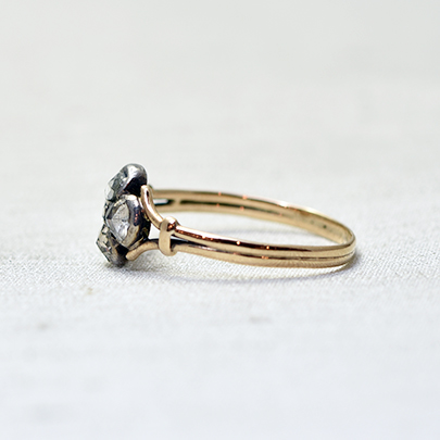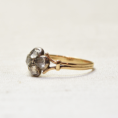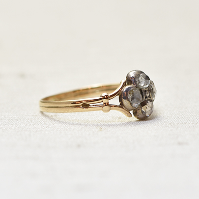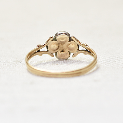 四つ葉のクローバーモチーフのローズカットダイヤモンドリング。