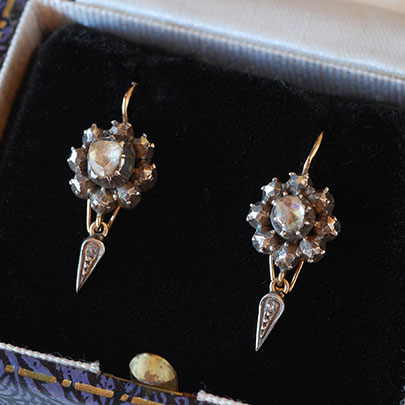 古いローズカットダイヤモンドの輝きは、控えめでありながらとても上品で華やか。