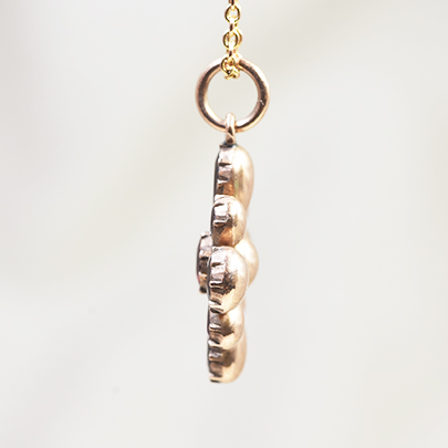 よく見て頂くと、小さくカットされた花びらを模しているガーネットは