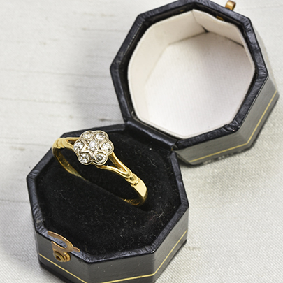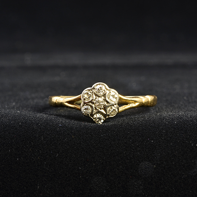 照りの良いダイヤモンド7石を使用したクラスターリング