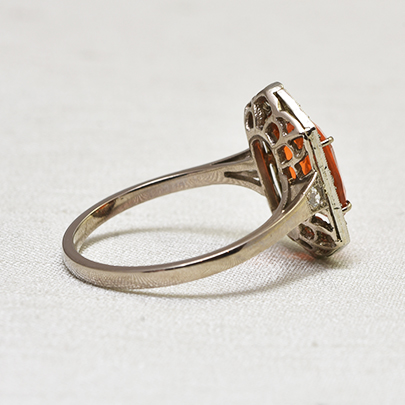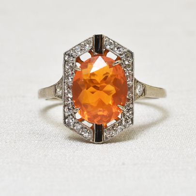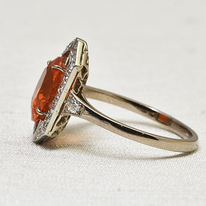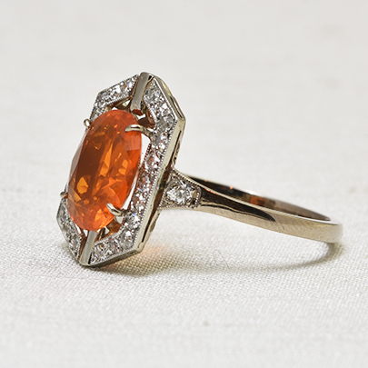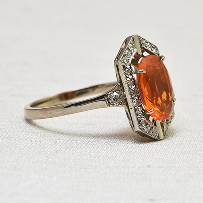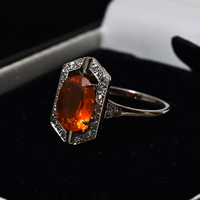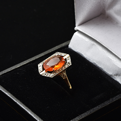 珍しいオレンジ色の宝石は、ファッションの差し色としても。