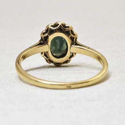 表面の擦れのせいでしょうか、少しマットなこちらの石へ光をかざすと裏面のファセットへその光が反射して 底の方からその名の通り小さな炎の揺らめきのような輝きをいくつも見ることが出来ます。