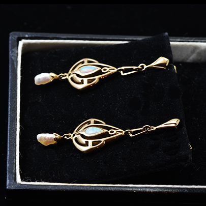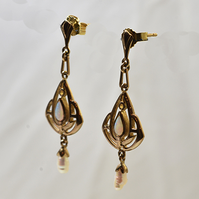 18ct.オパール・パールイヤリング