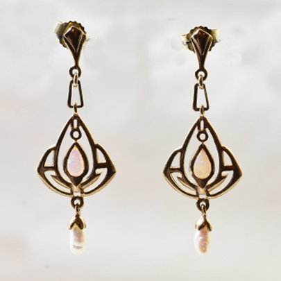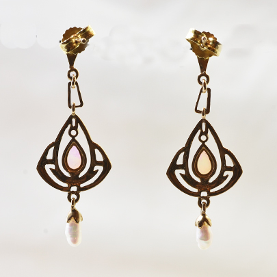 ゴールドのアールヌーヴォーデザインイヤリング。