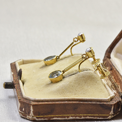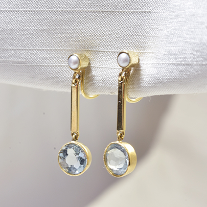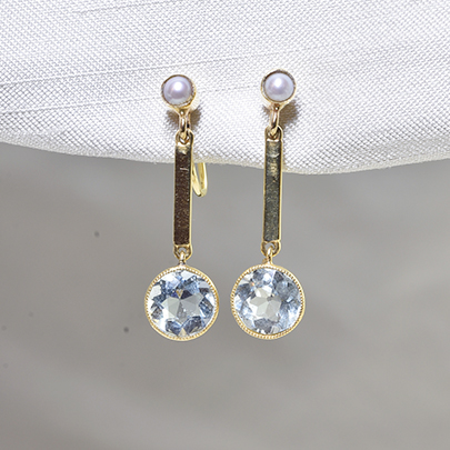 15ct.アクアマリン・パールイヤリング 商談中 [E-215]