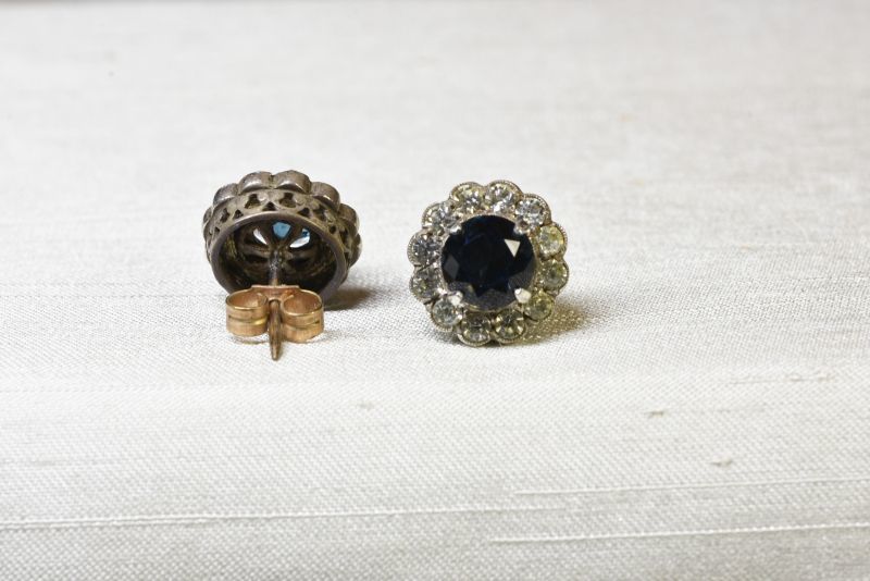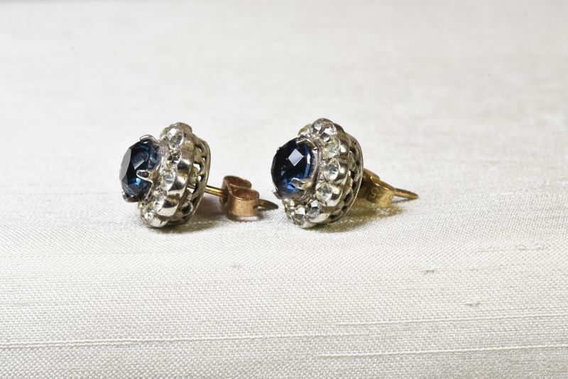 サファイアとダイアモンドのような美しい輝きのペーストガラスをセットしたピアスです。