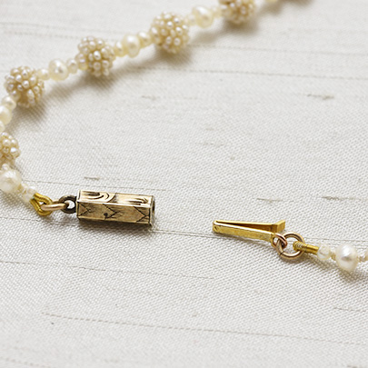 光る宝石を使用せず、しっとりしたパールだけを使って仕上げられた美しいこちらのネックレスは, 昼間に着けるためのジュエリー として使用されていたのでしょう。