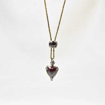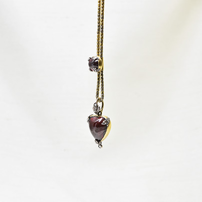 こちらのハートとオーバルにカボッションカットされたガーネットは、フォイルバックされており、