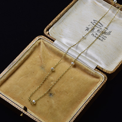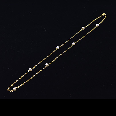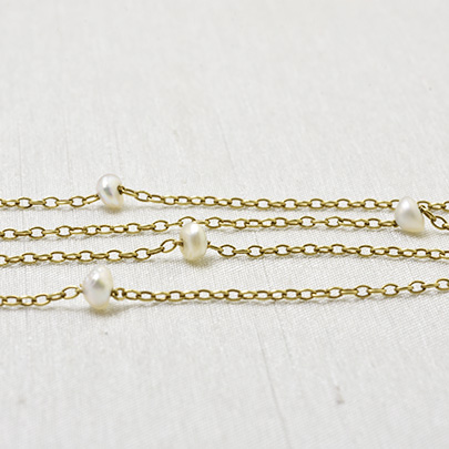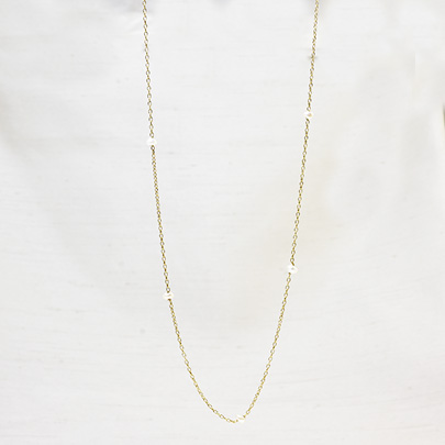 約43cmのチェーンの中に、7つのバロックパールが5cmほどの間隔でセットされたスティーションネックレス。