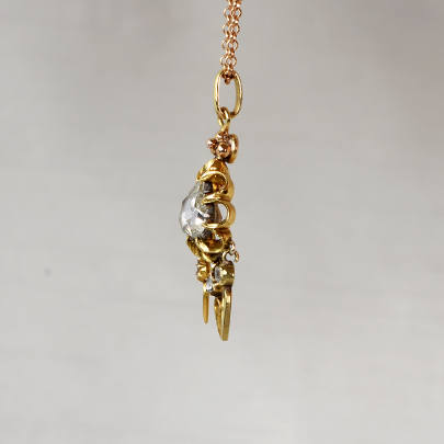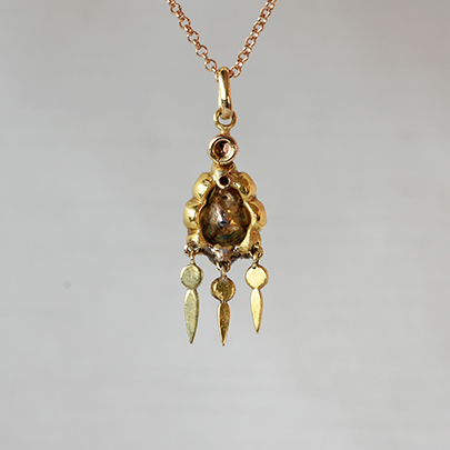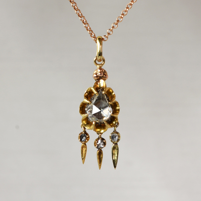 フリンジ部分にも小粒のローズカットダイヤモンドを配し