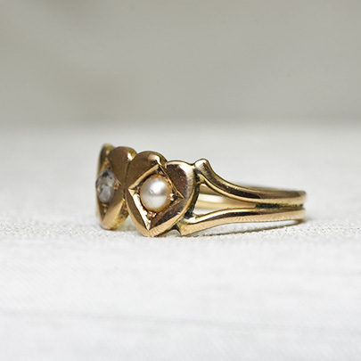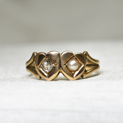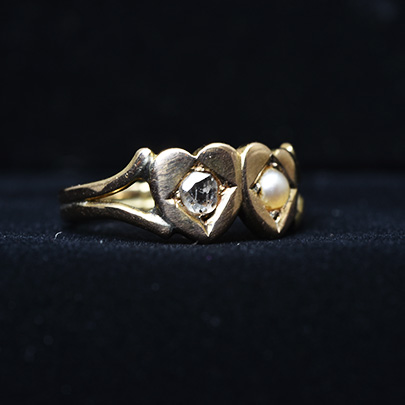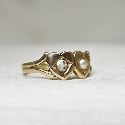 寄り添う二つのハートが可愛らしいリング。