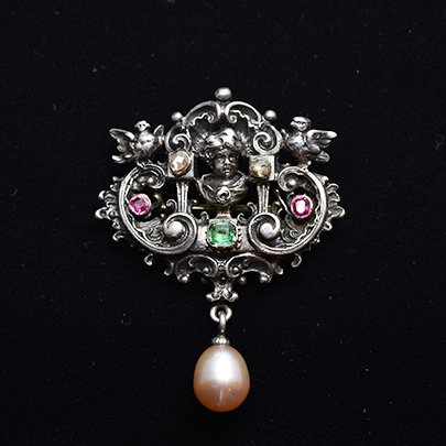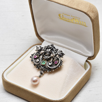 sold シルバー・エメラルド ルビー ダイヤ パール ブローチ [B-103]