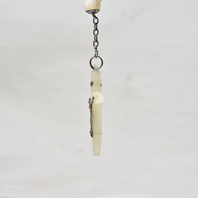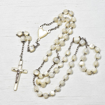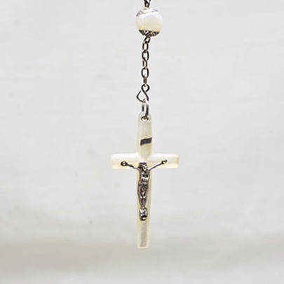 アイボリーカラーの艶やかな光沢が美しいマザーパールのロザリオ。
