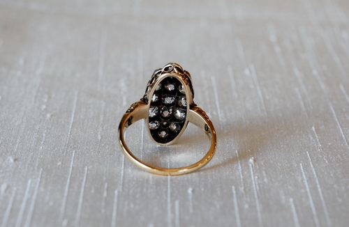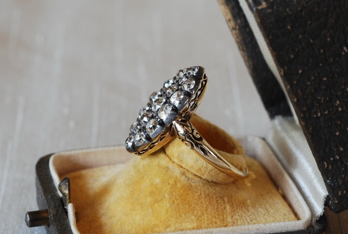 オールドヨーロピアンカットダイヤやオールドマインカットのダイヤが敷き詰められたリング。