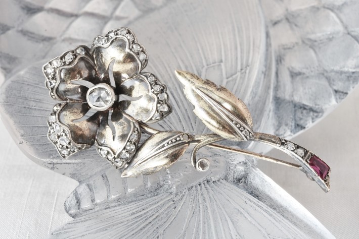 品名:SV.ダイヤモンド シンセティックルビー ブローチ