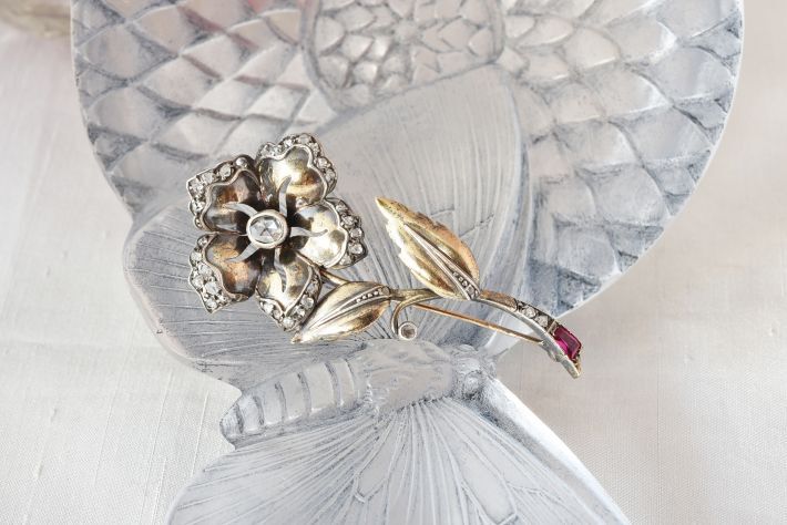 SV.ダイヤモンド シンセティックルビー ブローチ