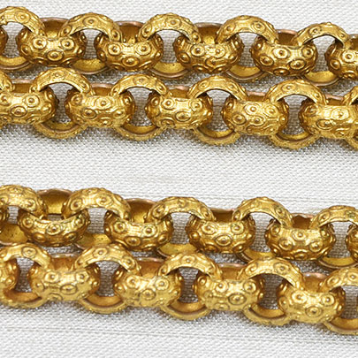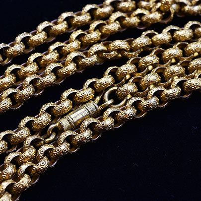 ドット模様が連なる、一コマ一コマを人の手によって繋がれた細工の美しいネックレス。