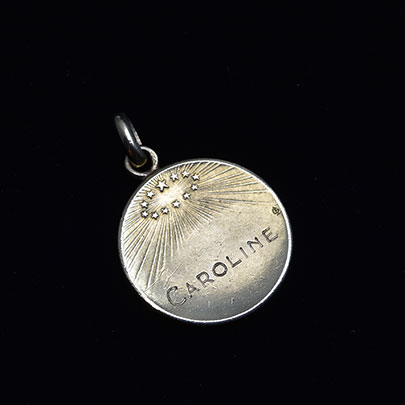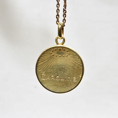また、裏面は12の星の冠から光が射すデザインと、CAROLINEという名の打刻。