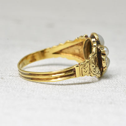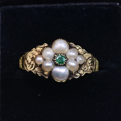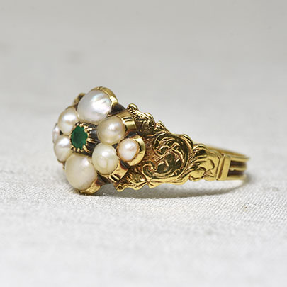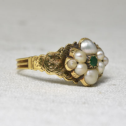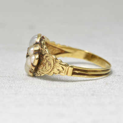 パールを花弁に見立てたリングは、この時代の王道 人気のあるモチーフですが