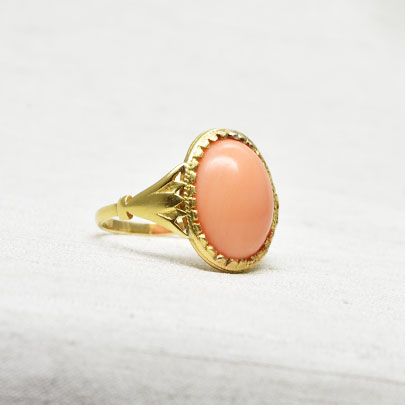 淡いオレンジが何とも上品な珊瑚のリング。