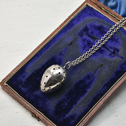 ヴィクトリアン期のシルバーのポマンダーペンダント。