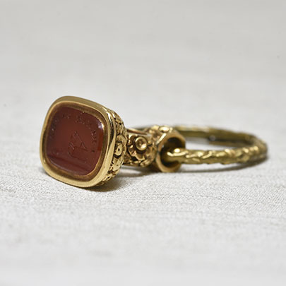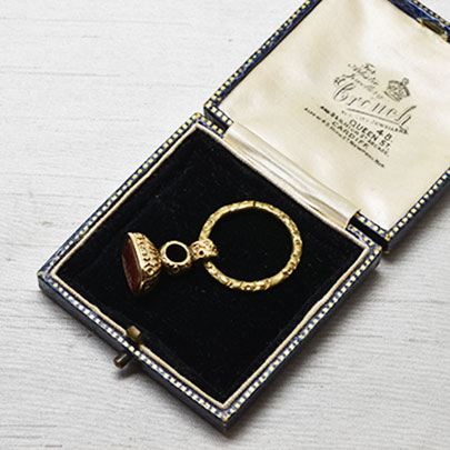 フォブシールは本来、男性が懐中時計などと一緒に腰からチェーンを通して着けていたものですが、