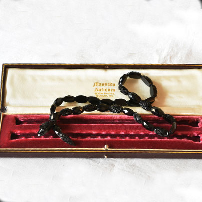 その際、細工がしやすい性質のジェットは様々なデザインのジュエリーに仕立てられ大流行します。