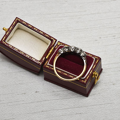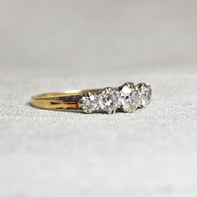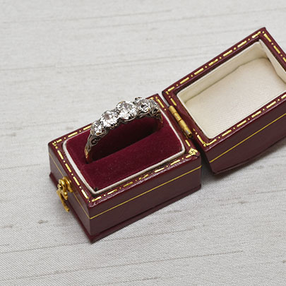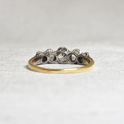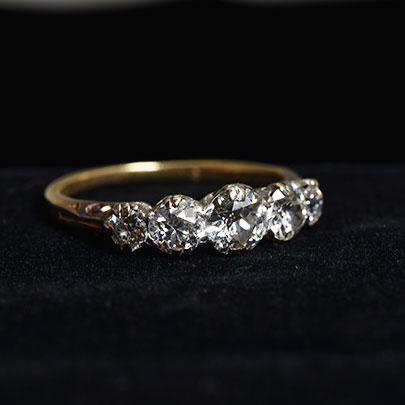 照りの良いダイヤモンドが5石中央を大きくグラデーションに作られたリング。