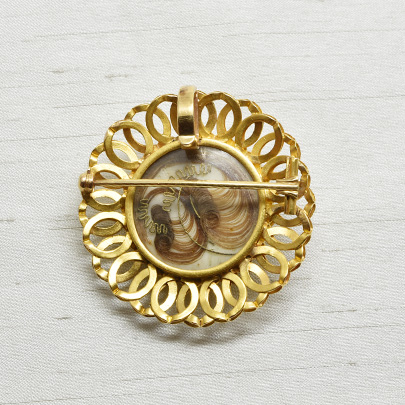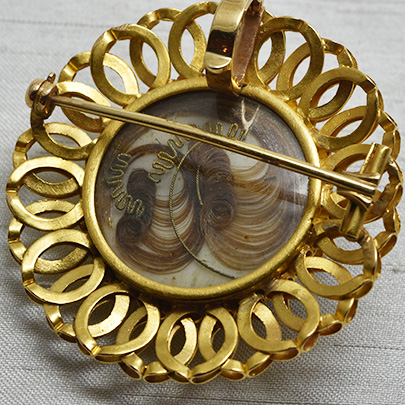 ブローチ裏面のロケットには美しく流れをつけた毛髪が封入されています。