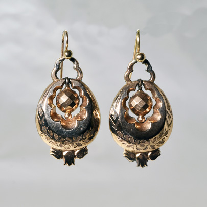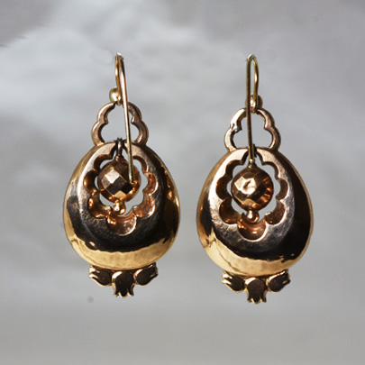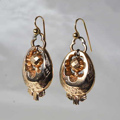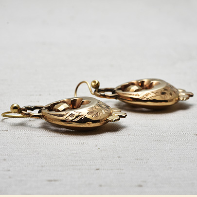 ヴィクトリアン期に作られました、しっとりとしたゴールドの輝きを楽しむことが出来るピアス。