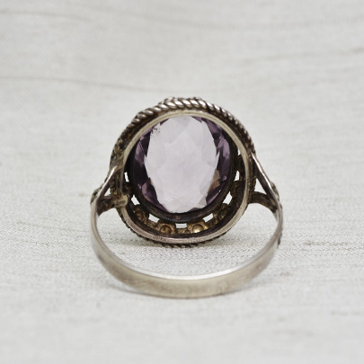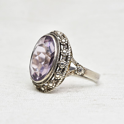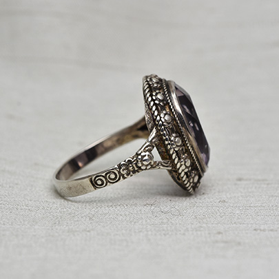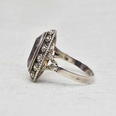 凝ったシルバー枠にアメシストが一石。