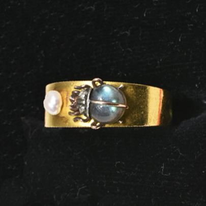 青く光るテントウムシに使われている宝石は、幻想的に輝くラブラドライト。