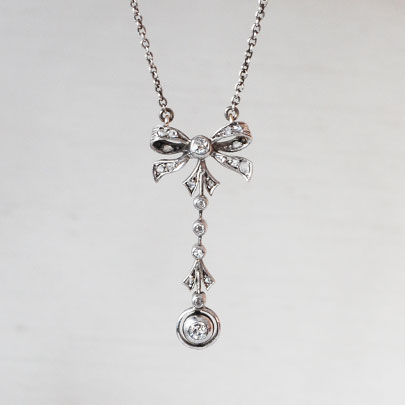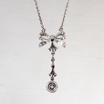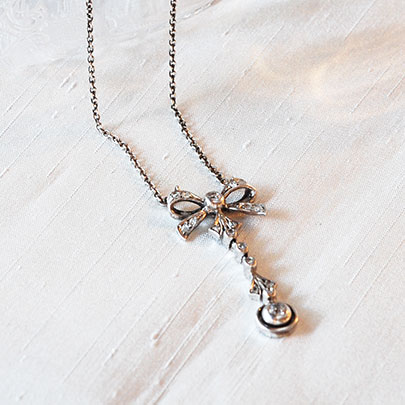 お着けいただくとリボンの下に揺れるダイヤモンドがキラキラと輝き