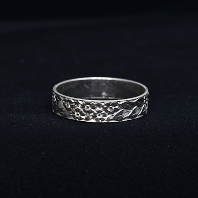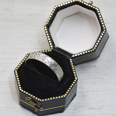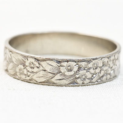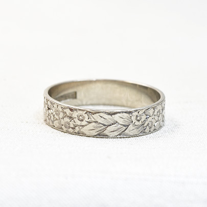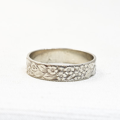 こちらの作品はプラチナの地金に草花紋。