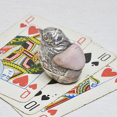 背中の部分にピンク色のシルクらしき布が張ってあり針を刺せる仕組みです。