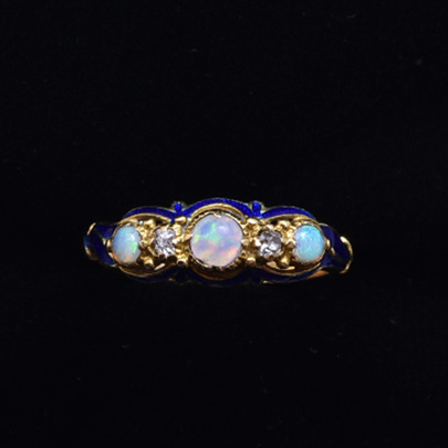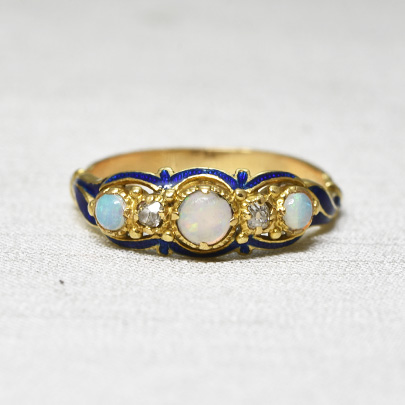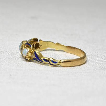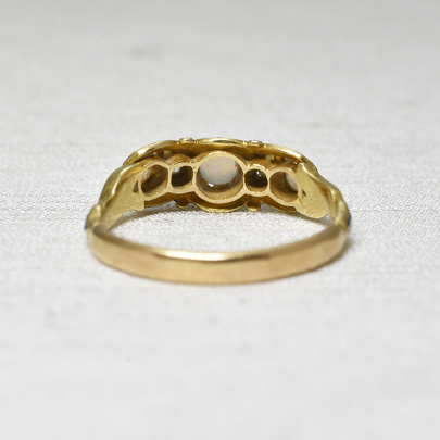 宝石が3石並んだリングは、アンティークリングの中でも人気のある定番のデザインですが、