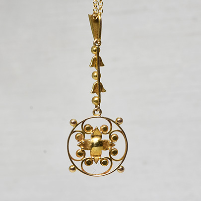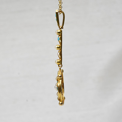 また繋がるラインの上から4石目にあたるパールがセットされている部分には、以前はターコイズが付いていたかもしれないと思わせる配置です。