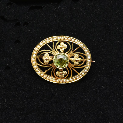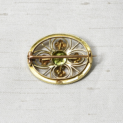 15ct,ペリドット・パールブローチ [B-133]