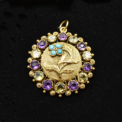 19ct,アメシスト・レモンクォーツ・ターコイズペンダント