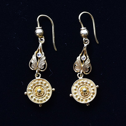 粒金と撚線をあしらった金の細工が見事なイヤリング。