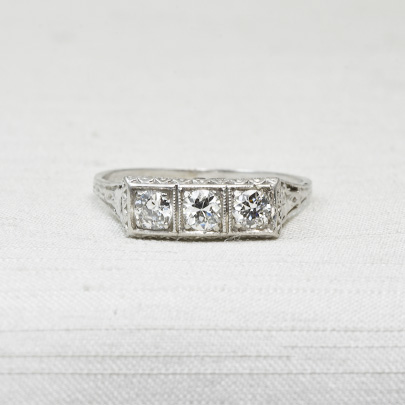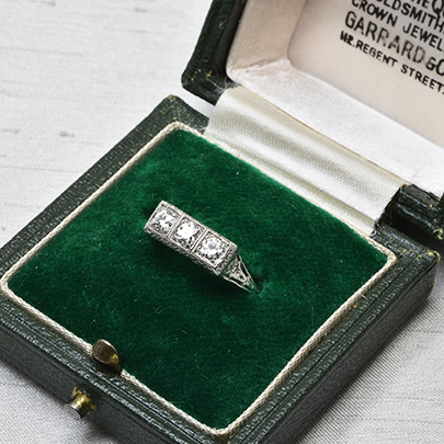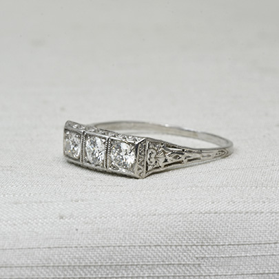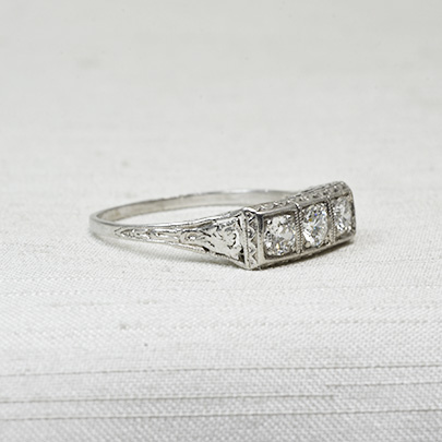 同じ大きさのダイヤモンドが3石並びます。