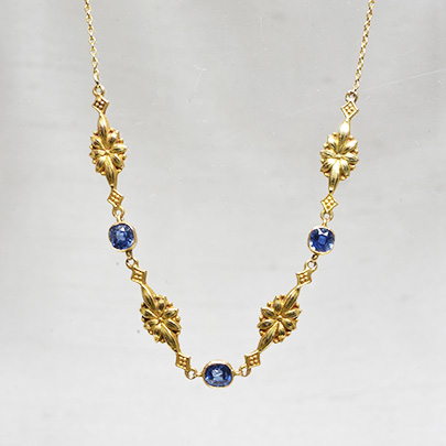 小花の左右に配した小さなひし形は、サファイアをより引き立たてます。