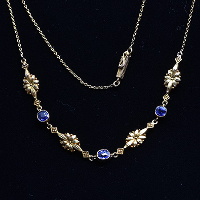 サファイアの色合いは程よく、18金イエローゴールドとのコントラストが素敵です。