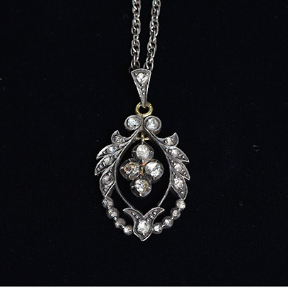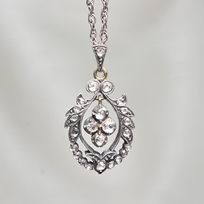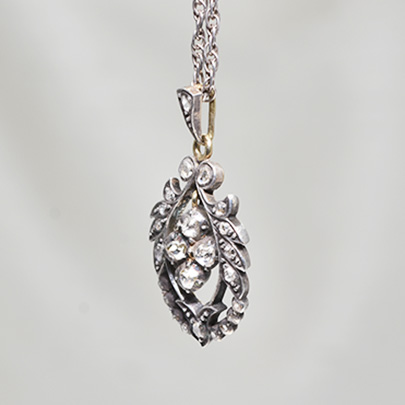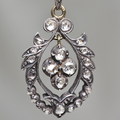 どんなシーンでも合わせて頂けそうな20世紀初期に作られましたローズカットダイヤモンドペンダント